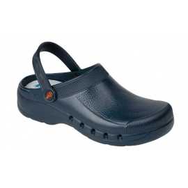 Sabot EVA ultra léger, antibactérien, sans latex, monocoque, anatomique et antidérapant. Lavable en machine jusqu’à 40 °C. Avec sangle arrière rabattable entre le talon et la claque, perforé sur les côtés pour faciliter la transpiration, le nettoyage et empêcher la pénétration directe de liquides ou de fluides dans le sabot. Plante avec micropoints de massage pour stimuler la circulation. Semelle intérieure en tissu sur mousse avec traitement antibactérien. ULTRA LÉGER : seulement 180 g la pair
